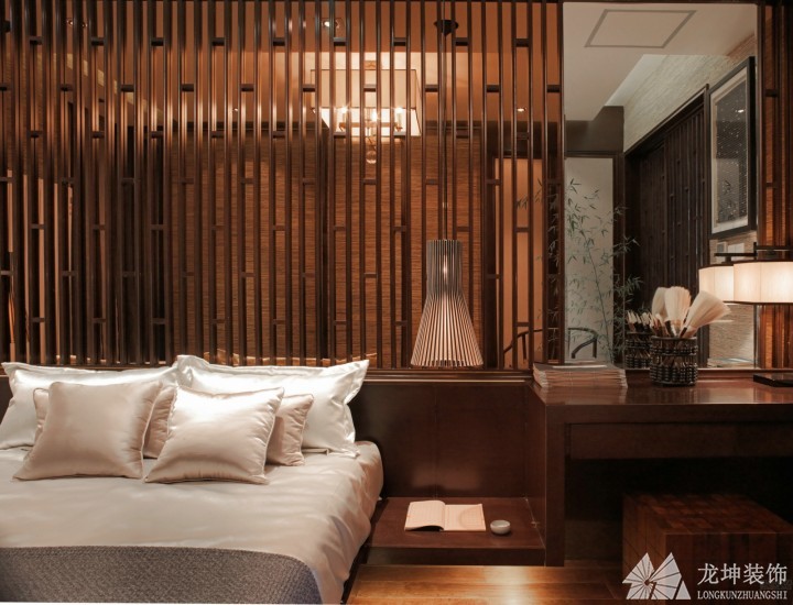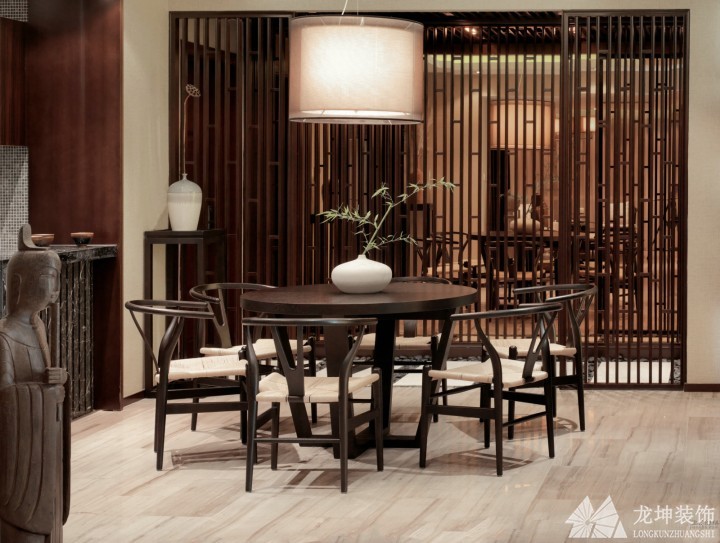 中國傳統(tǒng)居室非常講究空間的層次感,這種傳統(tǒng)的審美觀念在“新中式”裝飾風(fēng)格中,又得到了全新的闡釋。依據(jù)住宅使用人數(shù)和私密程度的不同,需要做出分隔的功能性空間,則采用“埡口”或簡約化的“博古架” 來區(qū)分;在需要隔絕視線的地方,則使用中式的屏風(fēng)或窗欞,通過這種新的分隔方式,單元式住宅就展現(xiàn)出中式家居的層次之美。