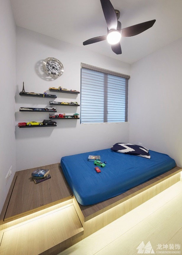 業(yè)主沒有采用傳統(tǒng)的床來設(shè)計(jì),而是選擇了榻榻米配上燈帶,可以有效地照明晚上也不用擔(dān)心。