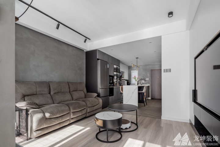 拆除了原本廚房客廳之間的槅墻和移門,將空間打開展望客廳、餐廚區(qū)域,極簡的配色、簡約無主燈設(shè)計,構(gòu)建整體大氣有格調(diào)的居家環(huán)境。