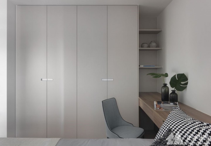 只要做衣柜的這面墻不是承重墻,就可以改成嵌入式的設計,有的屋主也會選擇用衣柜來代替墻,這樣也更省空間。