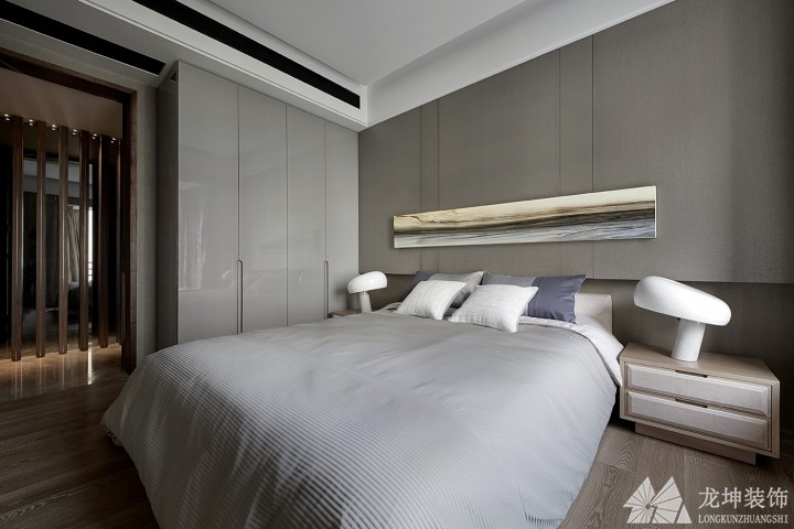 ??色調(diào)上以清淡的淺色系為主,追求一種清雅含蓄、端莊豐華的東方式精神境界。為了防止大量的木面,讓空間過于沉重,墻面以墻紙為主,同時(shí)沙發(fā)、窗簾等飾品也以米灰色調(diào)做主打,柔和大面積木色帶來的沖擊。