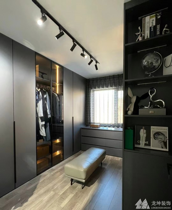 獨(dú)立衣帽間的內(nèi)部布局需要考慮到空間格局。一般有“U型設(shè)計(jì)、L型設(shè)計(jì)、一字型設(shè)計(jì)”。如果內(nèi)部空間是方形的,一般看起來(lái)比較寬敞,設(shè)計(jì)成“U型”的比較合適,功能分區(qū)更加明確,顏值也很高。不過(guò)這種“U型”設(shè)計(jì),衣柜數(shù)量較多,可能會(huì)有壓迫感,所以在燈光設(shè)計(jì)上要特別注意。