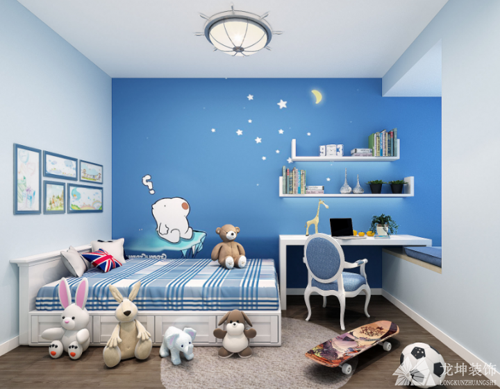 1、兒童房的臥室不能太花,墻面最好不要貼奇形怪狀的畫像,這樣會(huì)給孩子帶來怪異,最好是能貼些卡通動(dòng)漫。
